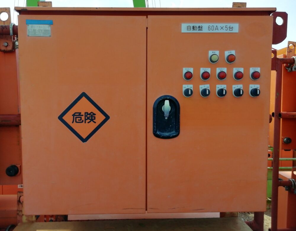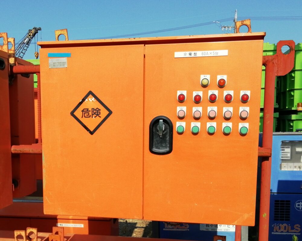 標準の仕様となり、現場の広さや発電機の容量、ご使用用途に合わせて、60A×1口から、(100A×3口+60A×2口)合計5口まで幅広く取り扱いをしています。